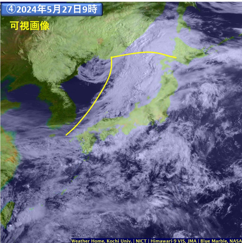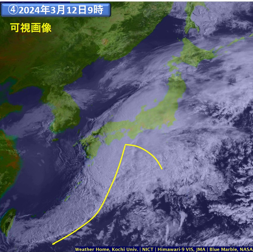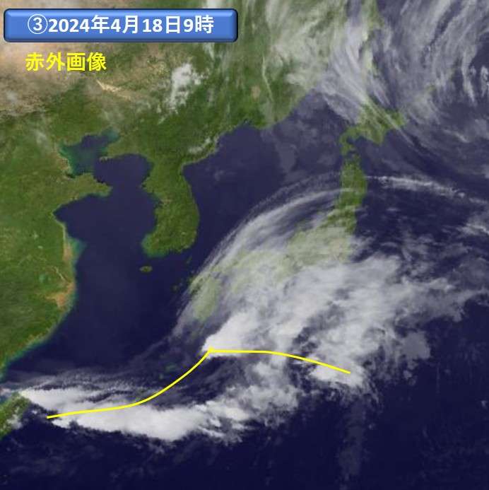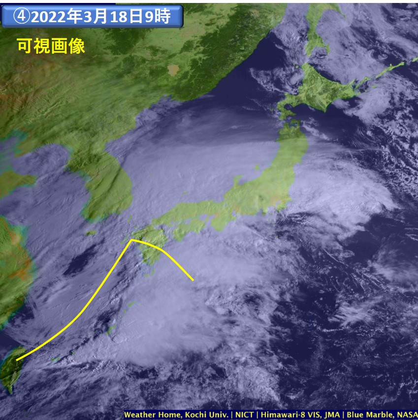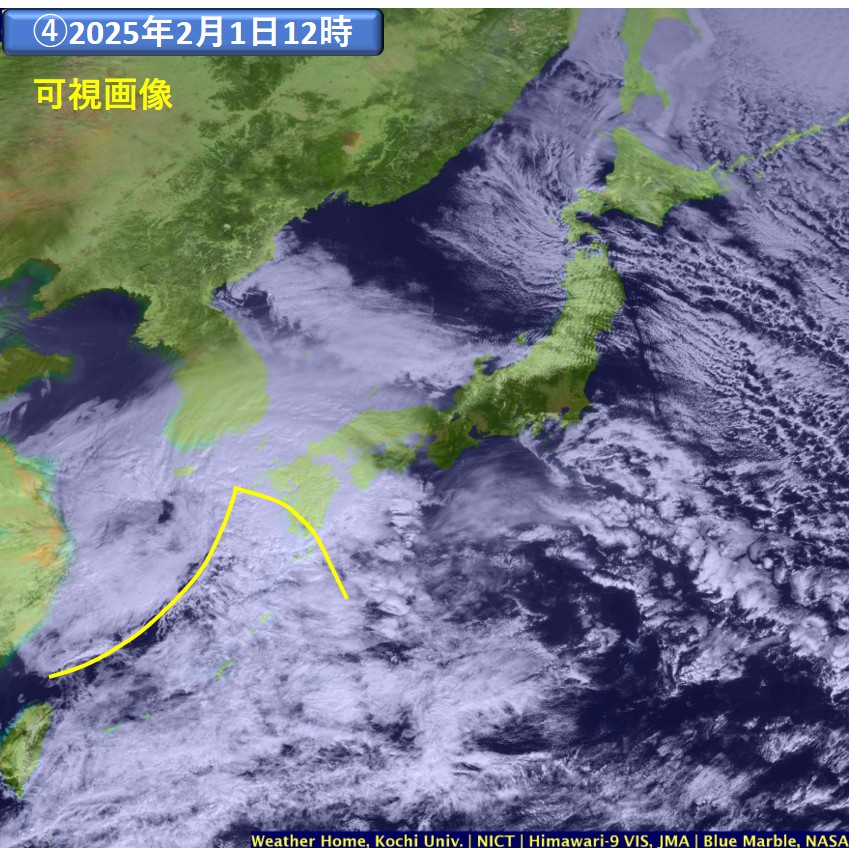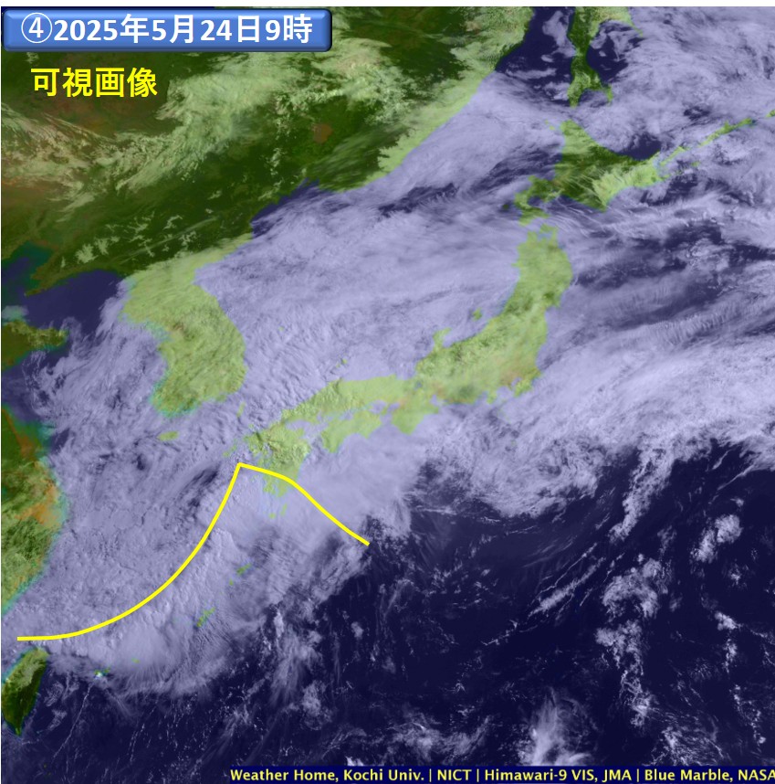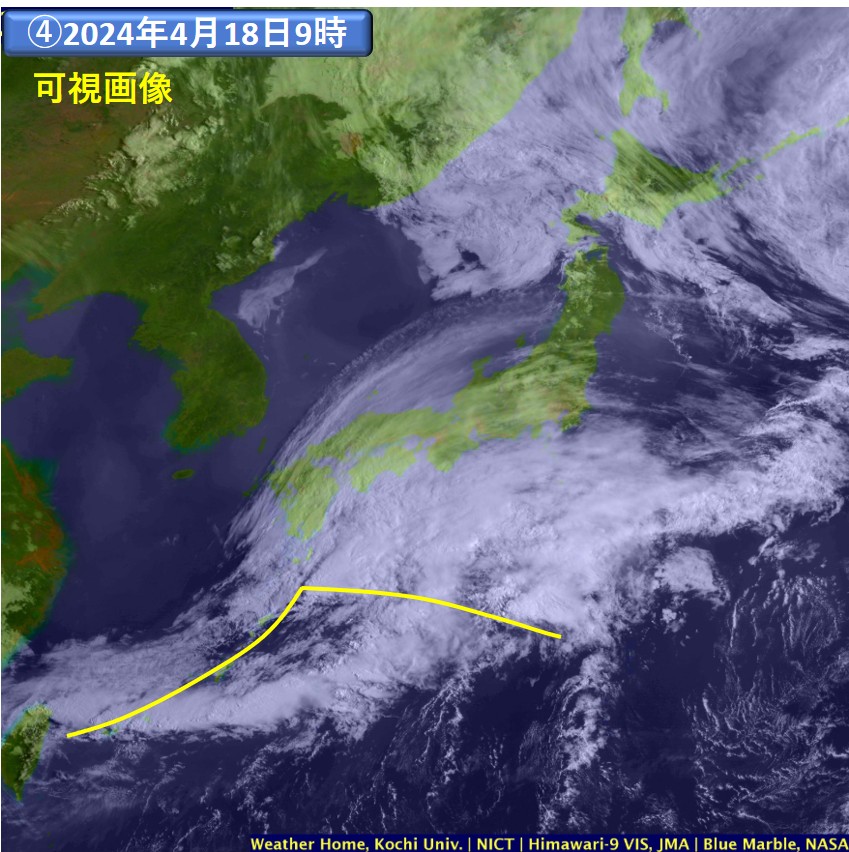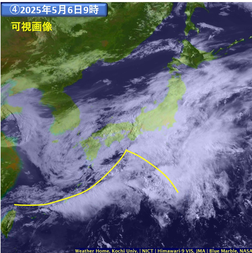 注)①~③の注釈は、図2を参照。③と④の画像は高知大学気象情報頁 (http://weather.is.kochi-u.ac.jp/) による。