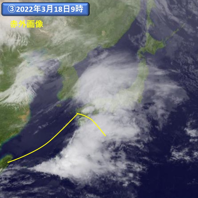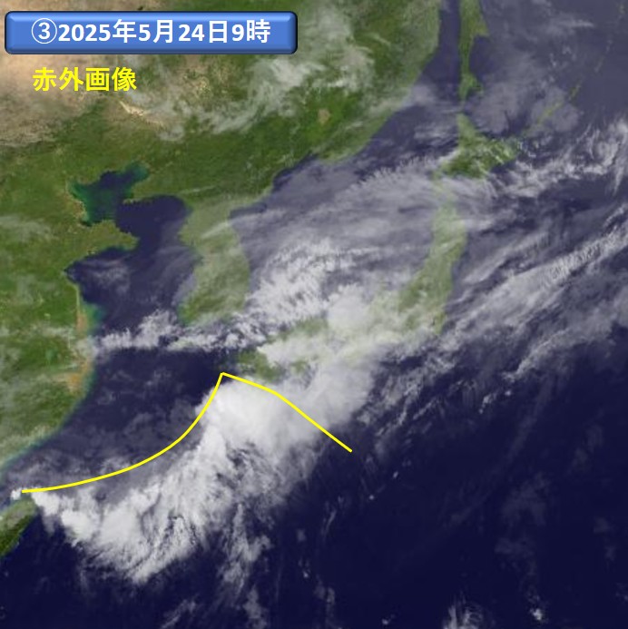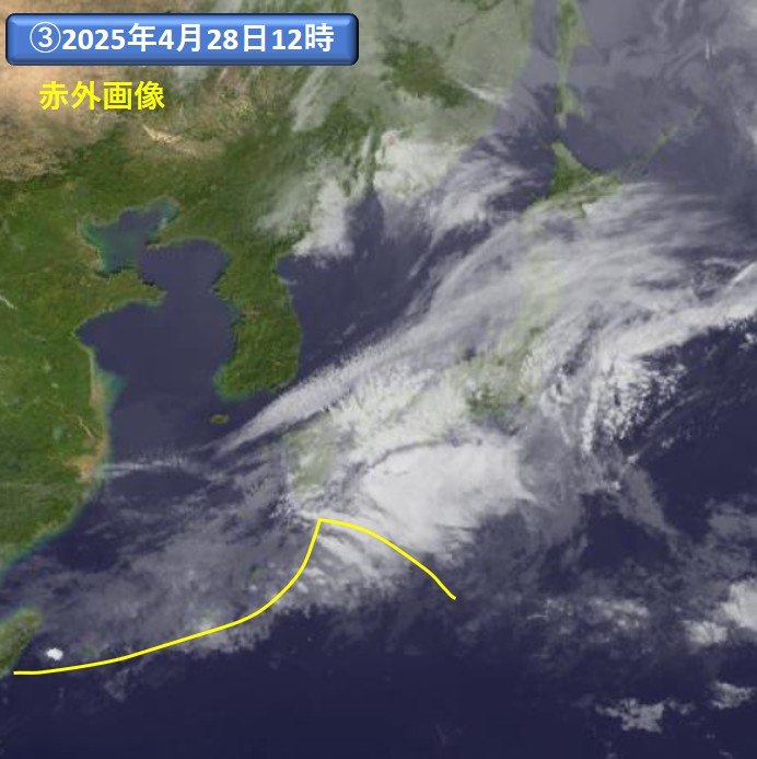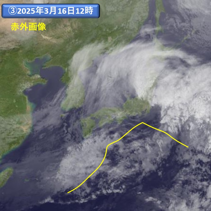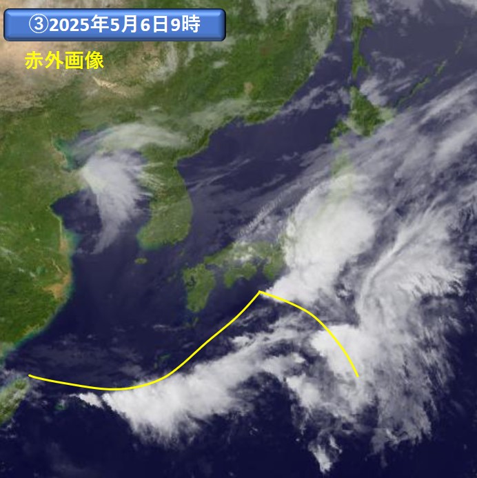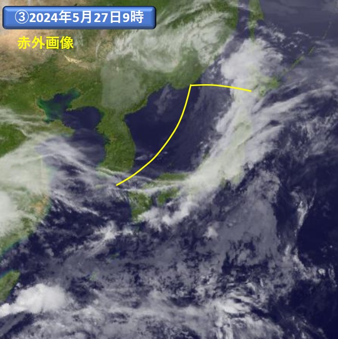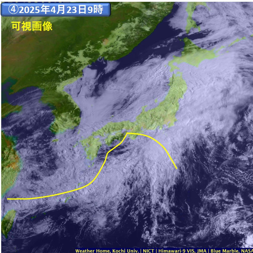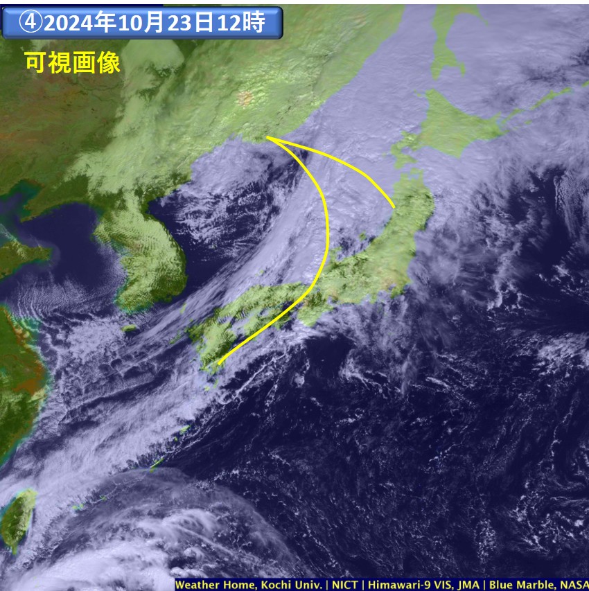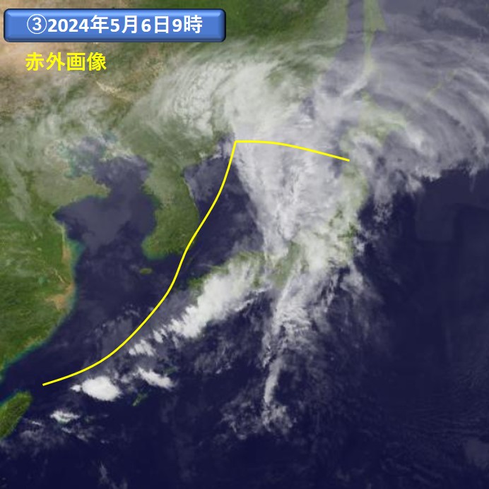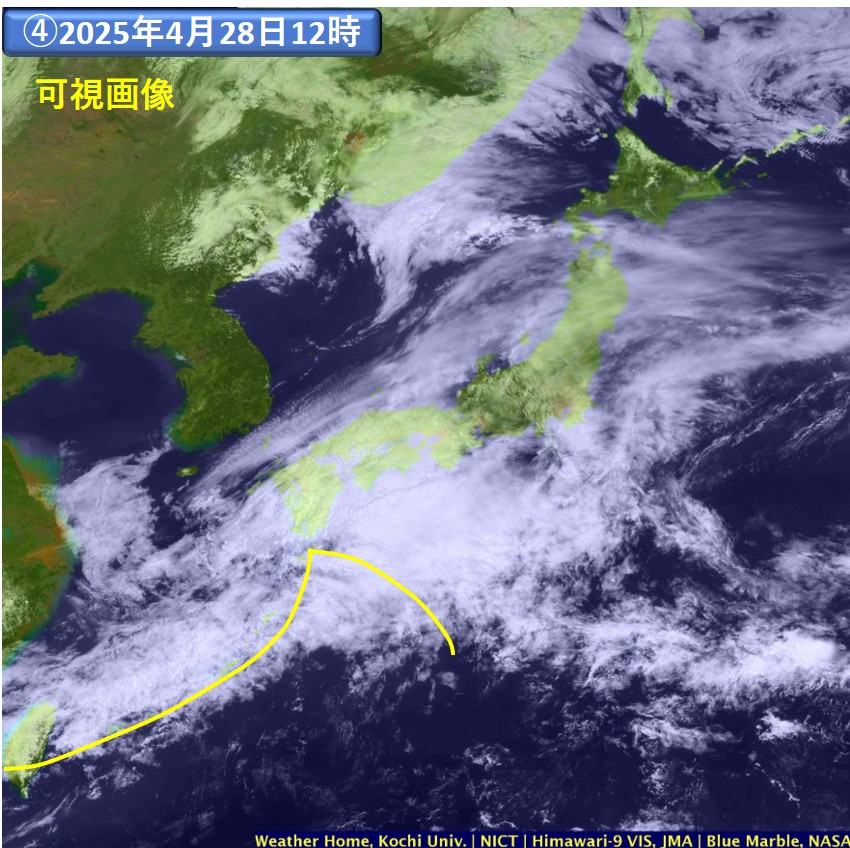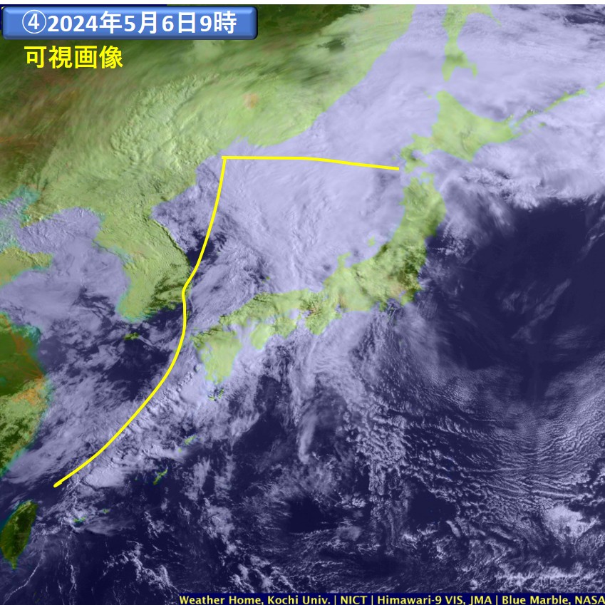 注)①~③の注釈は、図2を参照。③と④の画像は高知大学気象情報頁 (http://weather.is.kochi-u.ac.jp/) による。