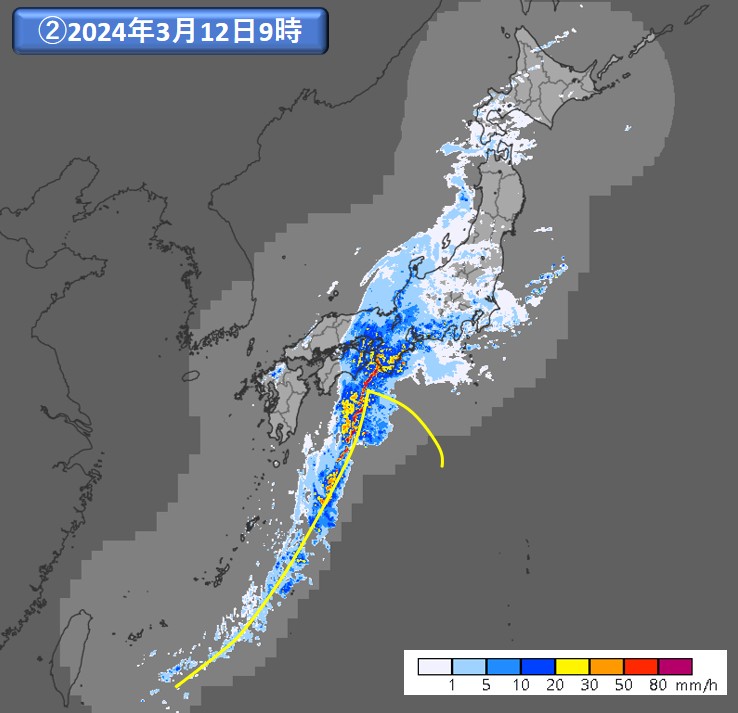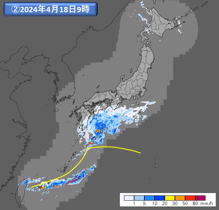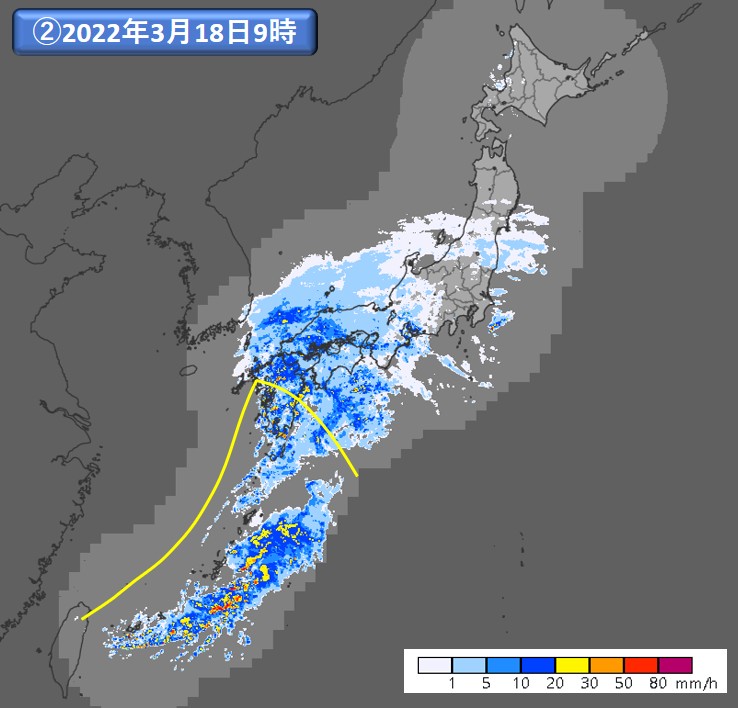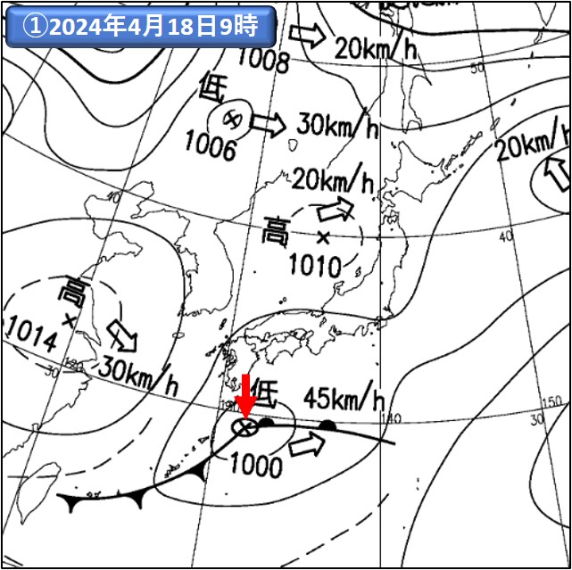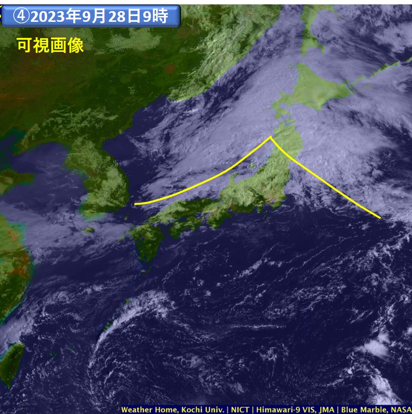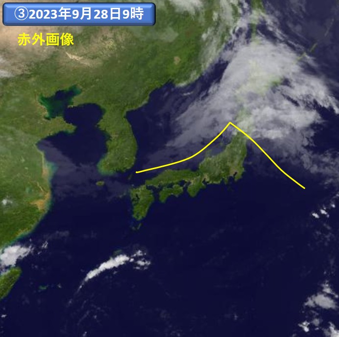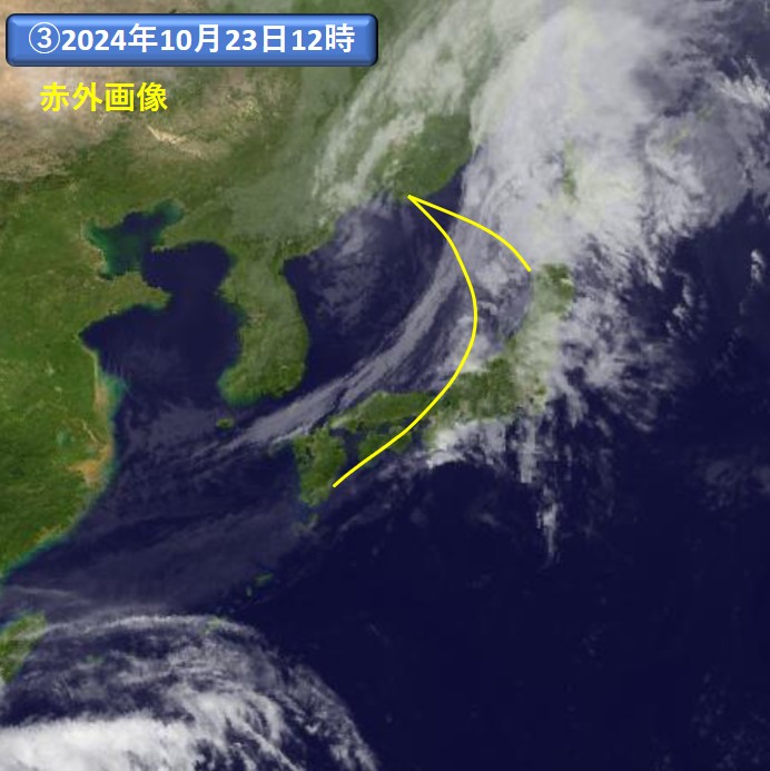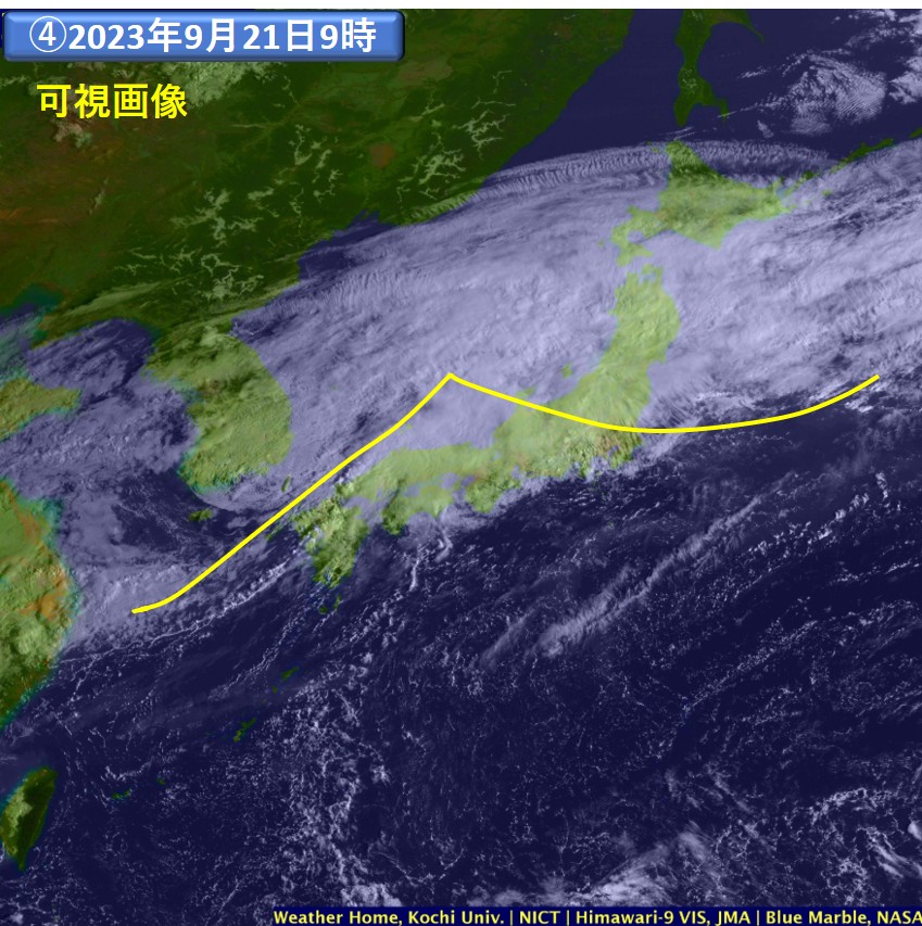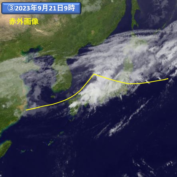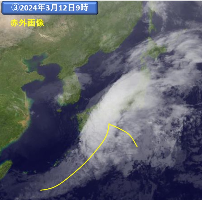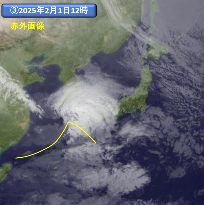 注)①~③の注釈は、図2を参照。③と④の画像は高知大学気象情報頁 (http://weather.is.kochi-u.ac.jp/) による。