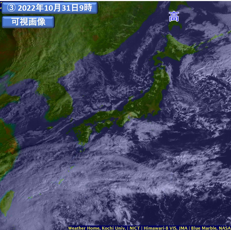 ③と④:高知大学気象情報頁 (http://weather.is.kochi-u.ac.jp/) による。画像の見方は、豆知識17を参照。