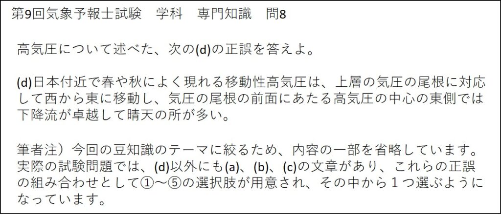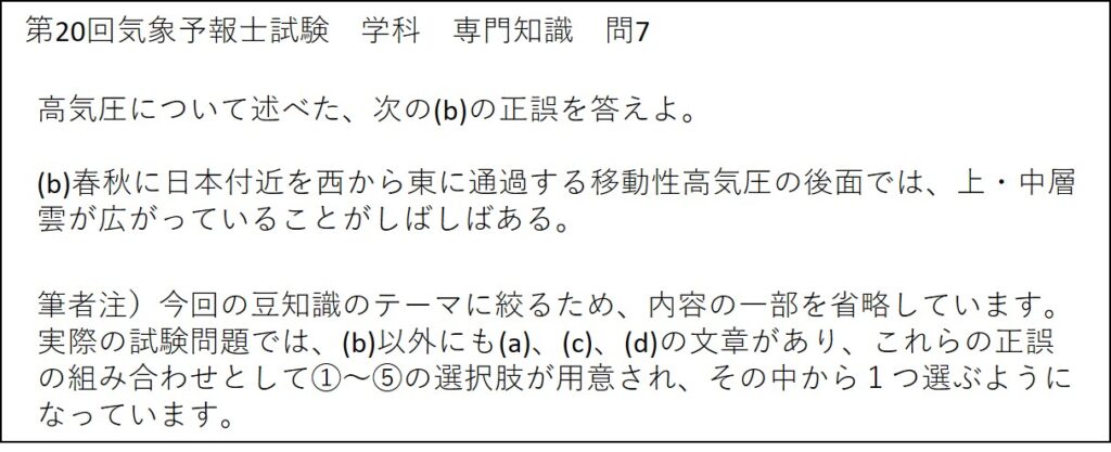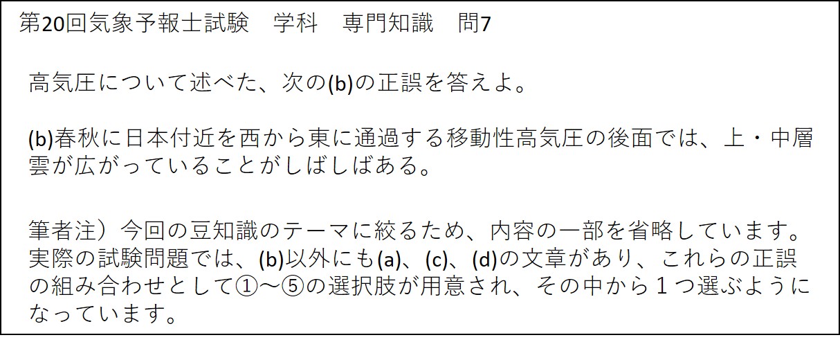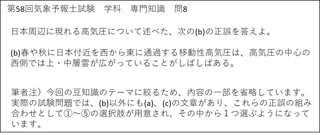 過去の気象予報士試験において、移動性高気圧に関する問題が出された例を、以下に紹介します。