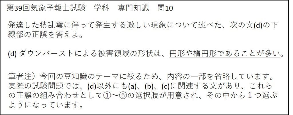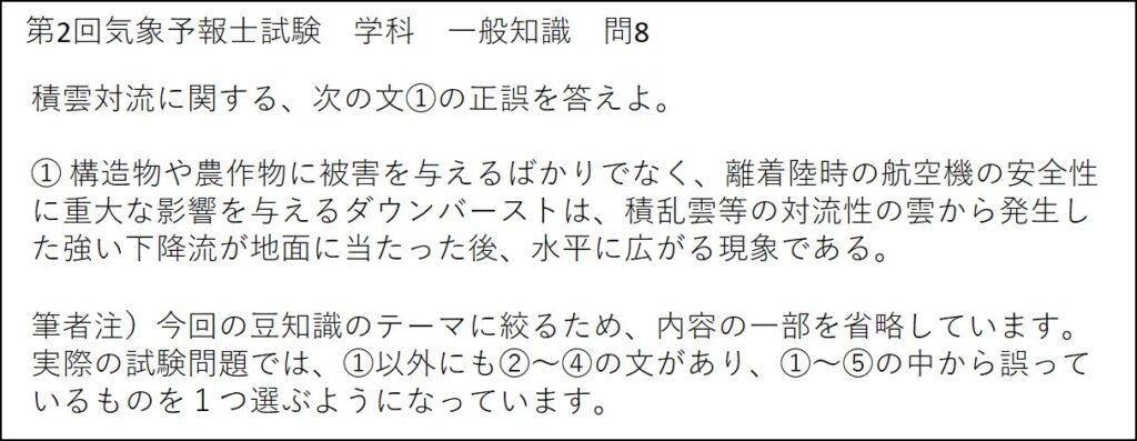 過去の気象予報士試験において、ダウンバーストに関する問題が出された例を、以下に紹介します。